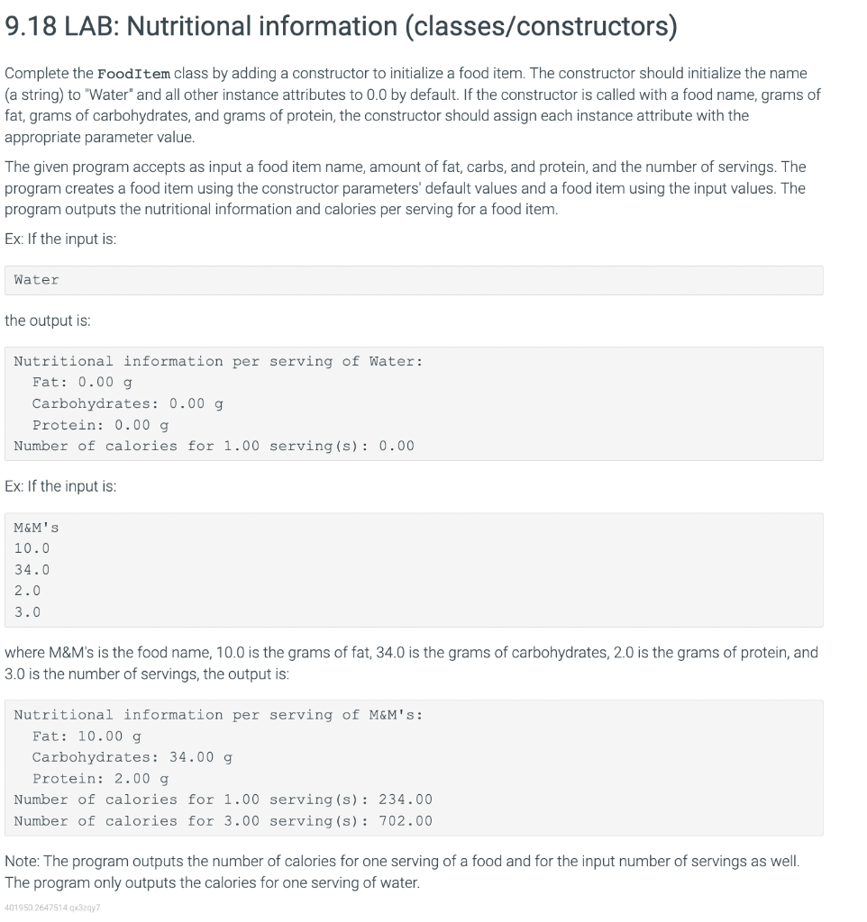Solved In Python Given Class Fooditem Constructor Chegg Com